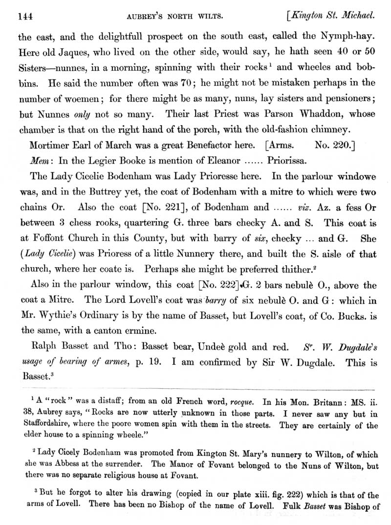 Page 21 History of Kington St. Michael; deeds of the manor, Priory of St. Mary, spinning.