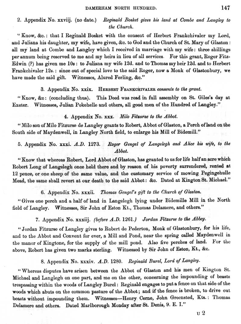 Page 24 History of Kington Langley; Fitzurse, deeds from Glastonbury Abbey.