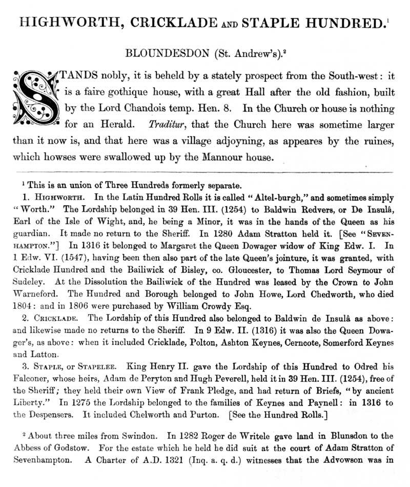 Chapter 6 Highworth, Cricklade and Staple Hundred