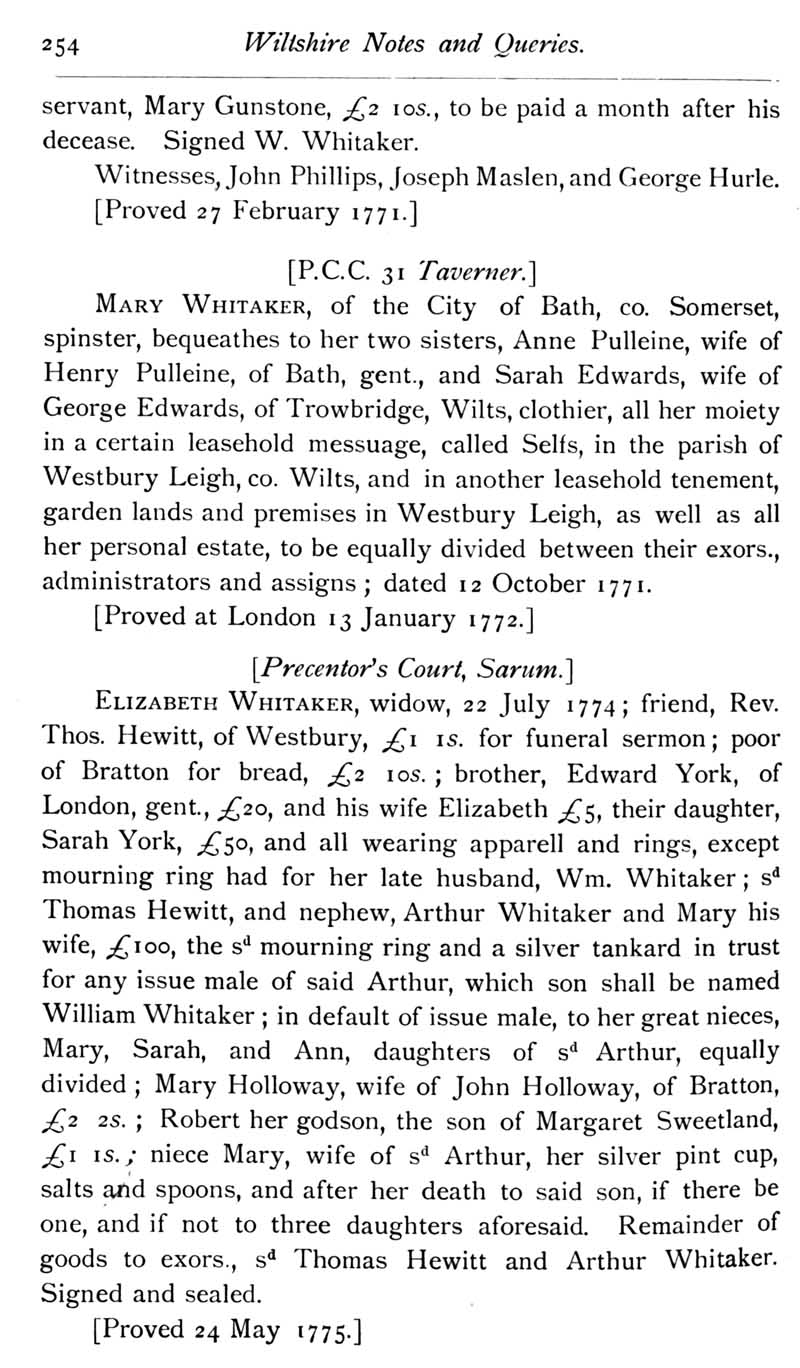 Chapter 7 Place House Melksham; Records of Wiltshire Parishes; Quakerism in Wiltshire; Feet of Fines for Wiltshire; Purton; Melksham 'City'; Arms in Westwood Church; Adam Goldney to george Fox; Wiltshire Briefs; Miscellanea; Queries; Replies; Notes on Books.