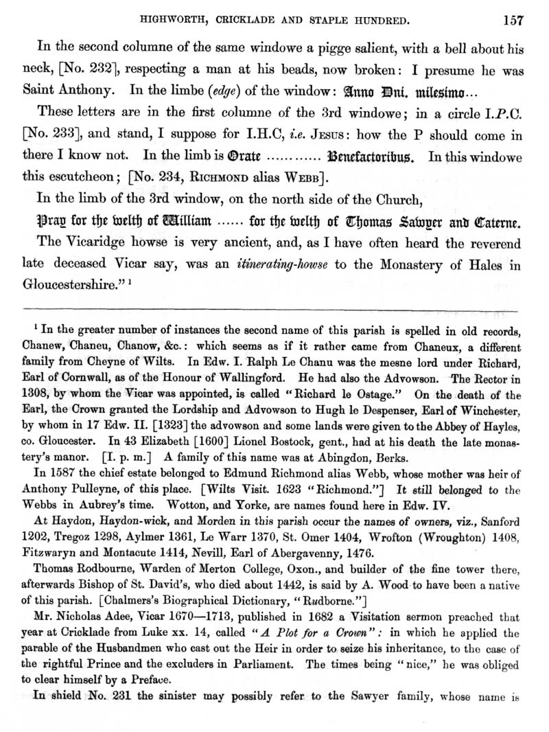 Page 8 History of Rodbourne Cheney, the church, families associated with Rodbourne.