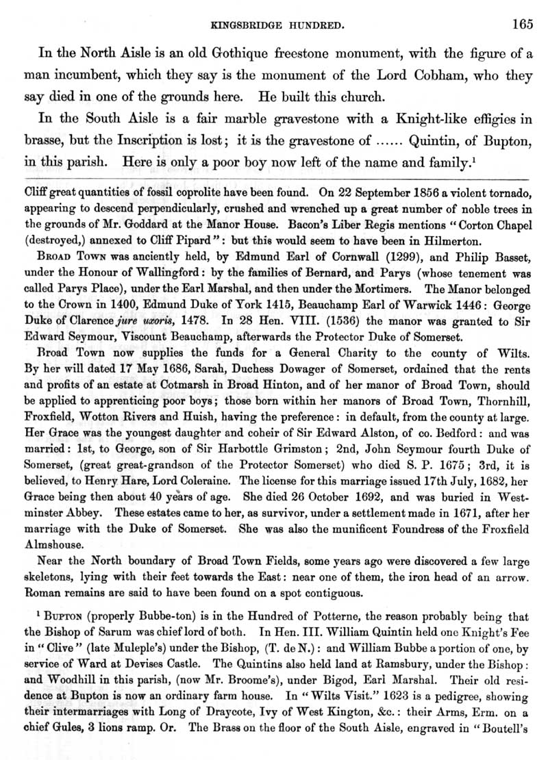 Page 4 History of Clyffe Pypard; the church, geology, Broad Town, Charity, Sarah, Dowager Duchess of Somerset, Bupton.