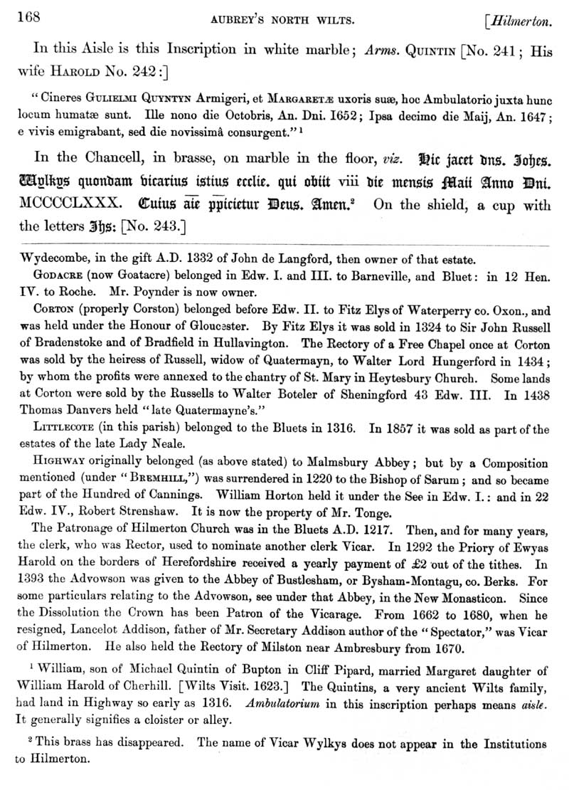 Page 7 History of Hilmarton; Widcombe, Goatacre, Corston, Littlecote, Highway.