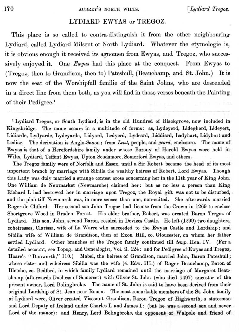 Page 9 History of Lydiard Tregoze; Trgoze family and the St. John family.
