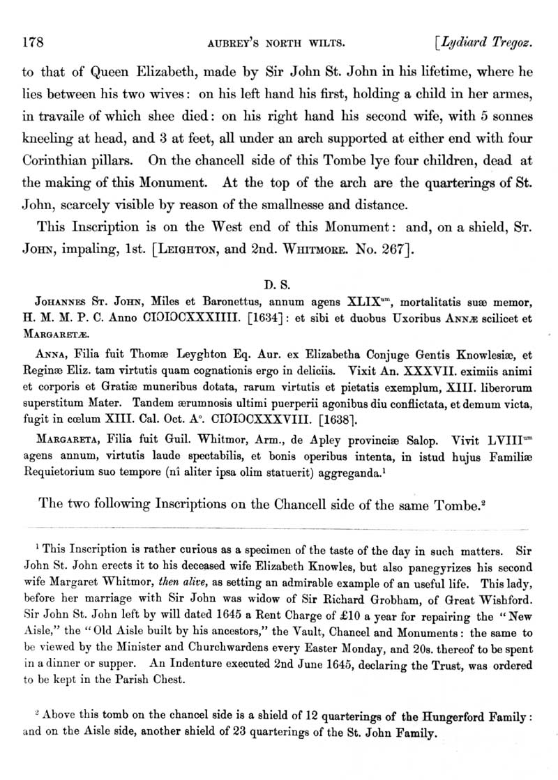 Page 18 History of Lydiard Tregoze: the church, monument and arms of John St.John.