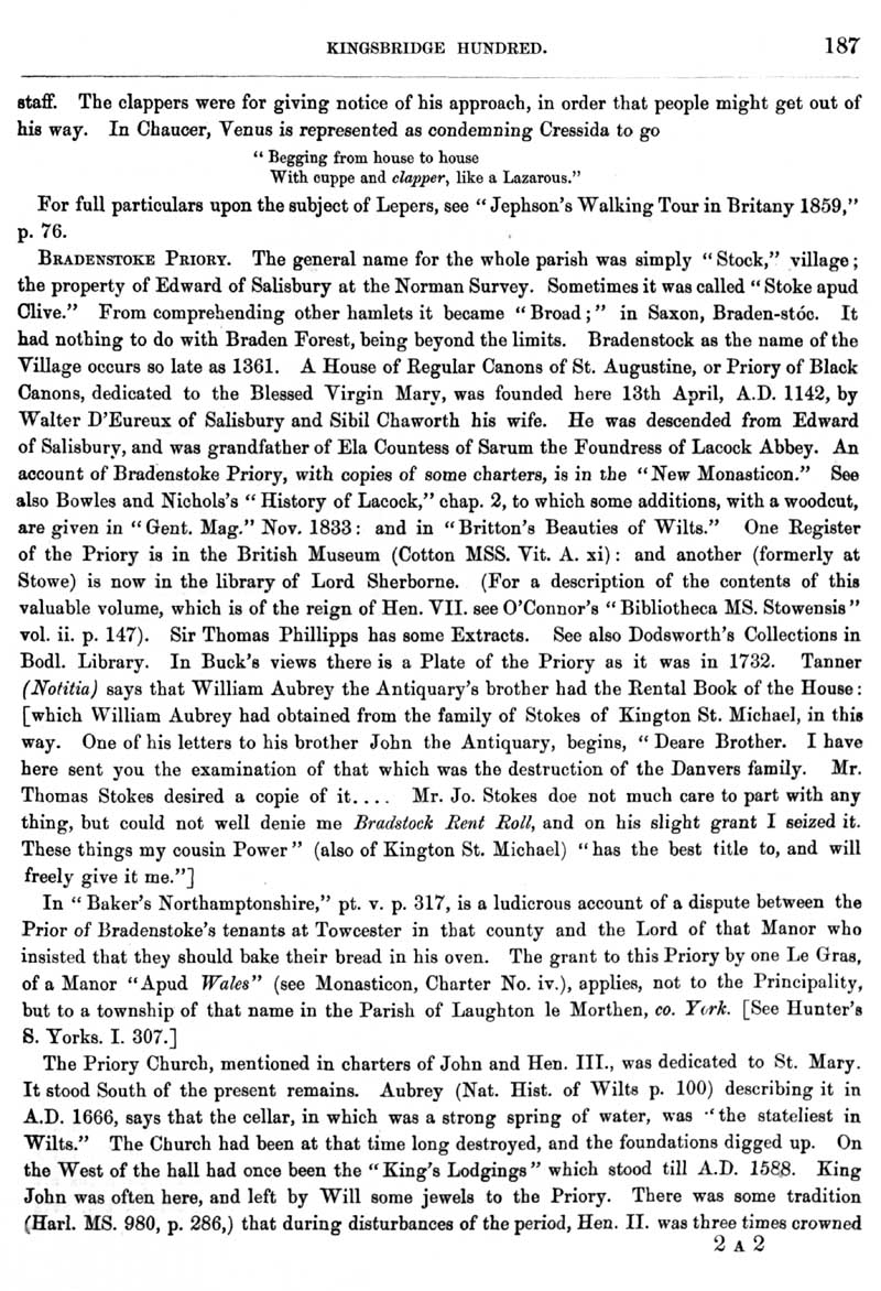Page 27 Lyneham. History of Bradenstoke and Clack, the priory.