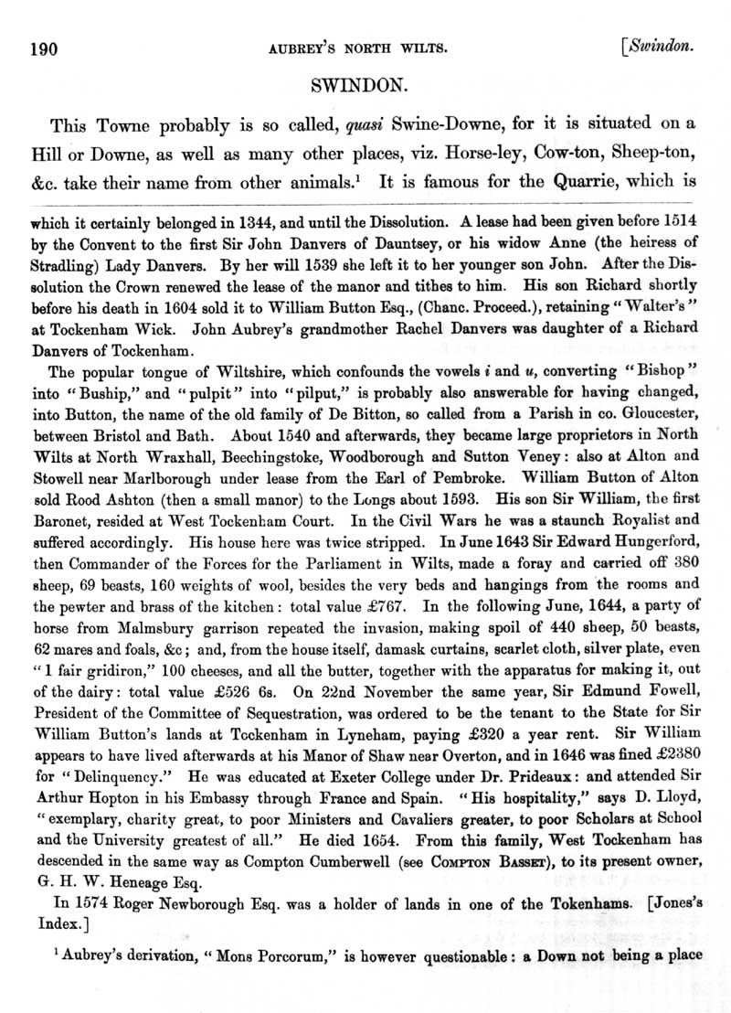 Page 30 History of Tockenham; owners of manors. History of Swindon.