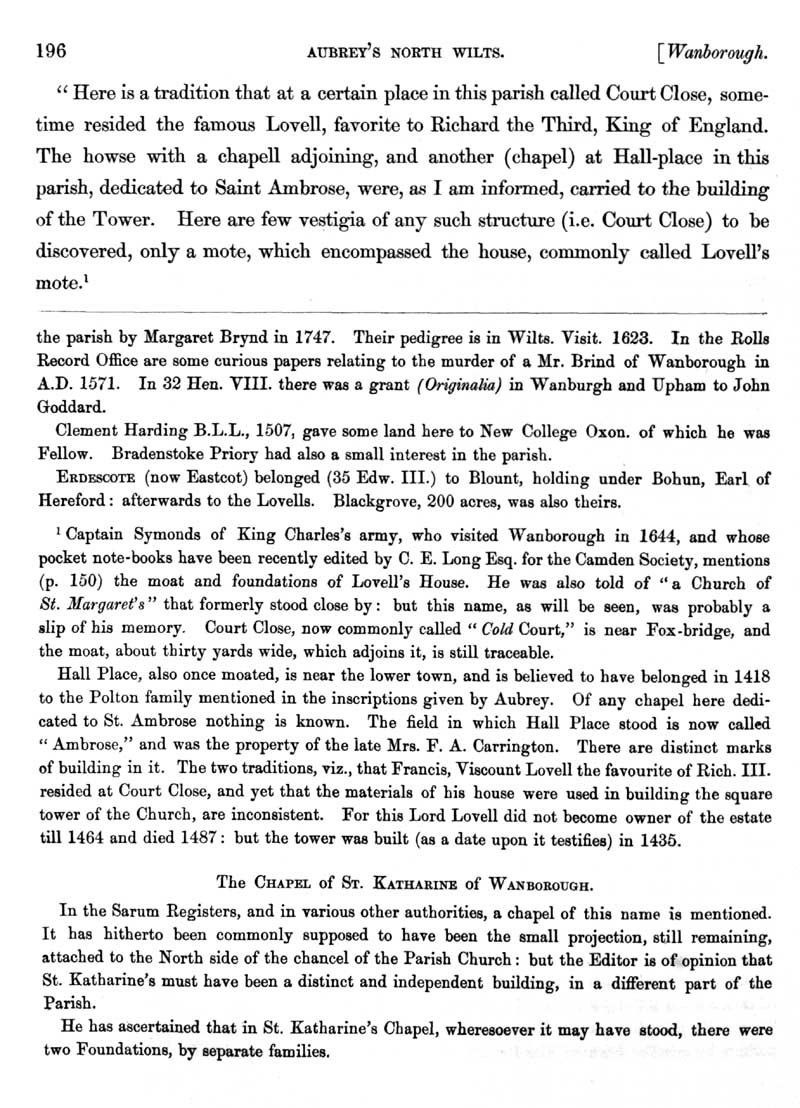 Page 36 History of Wanborough, landowners, chapel of St, Katherine.