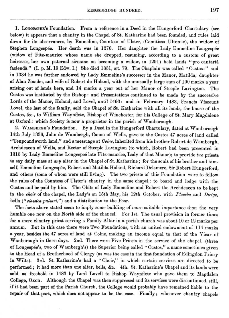 Page 37 History of Wanborough; chapel of St. Katherine Longspee's Foundation, Wambergh's Foundation.