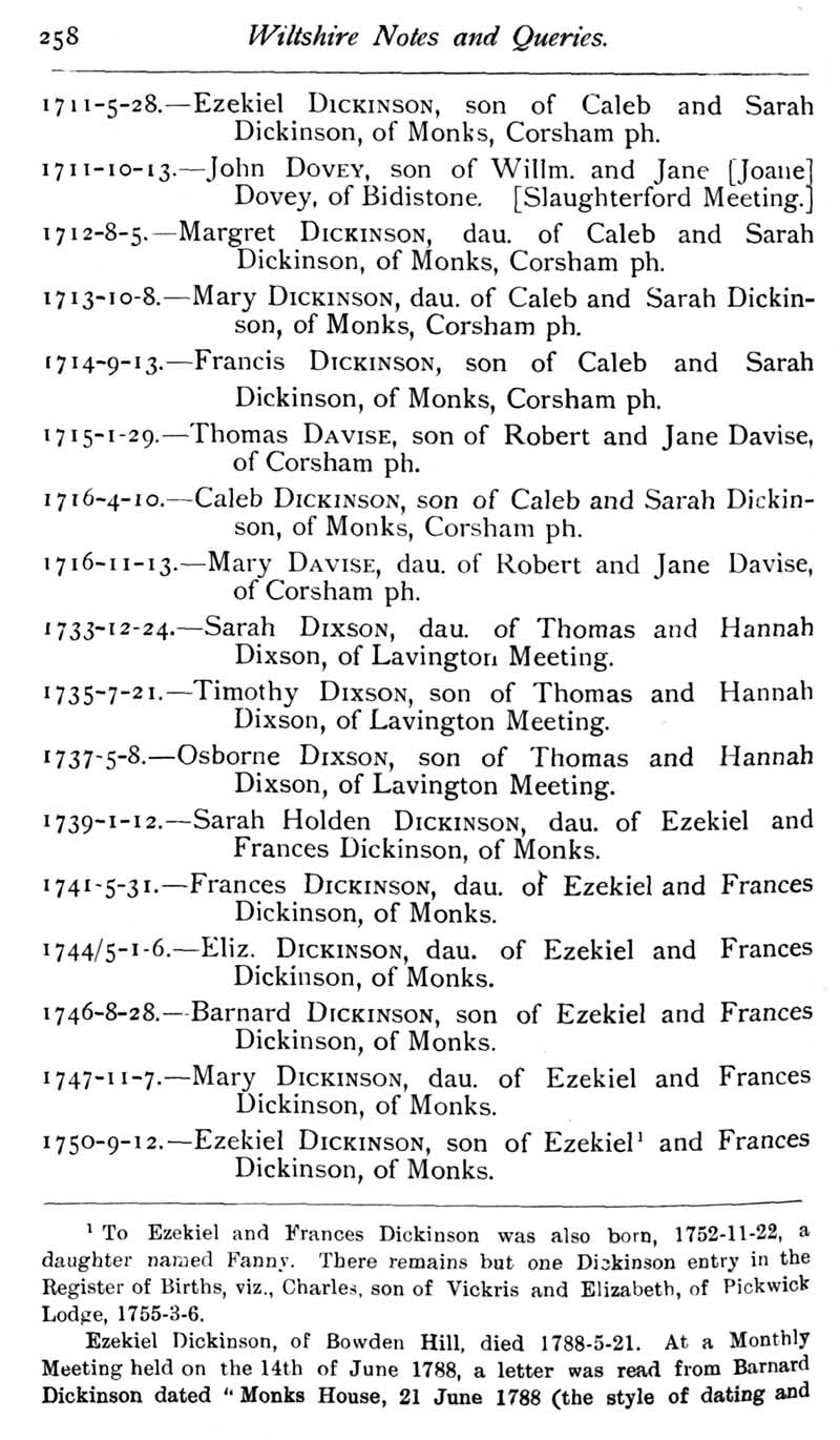 Chapter 7 Place House Melksham; Records of Wiltshire Parishes; Quakerism in Wiltshire; Feet of Fines for Wiltshire; Purton; Melksham 'City'; Arms in Westwood Church; Adam Goldney to george Fox; Wiltshire Briefs; Miscellanea; Queries; Replies; Notes on Books.
