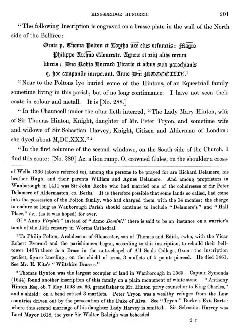Page 41 History of Wanborough; church of St. Andrew, monuments and inscriptions, Thomas and Edith Polton, Hinton family.