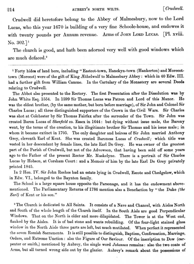 Page 9 History of Crudwell, landowners, Church of All Saints.