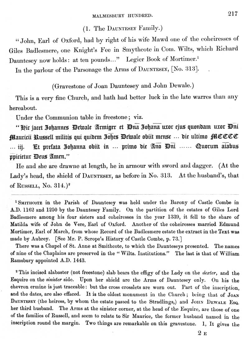 Page 13 History of Dauntsey; descent of the manor, Dauntesey family, Smithcote.