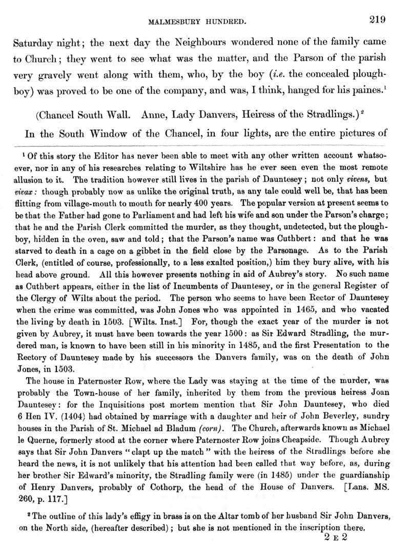 Page 15 History of Dauntsey; descent of the manor, Stradling family, Danvers family.