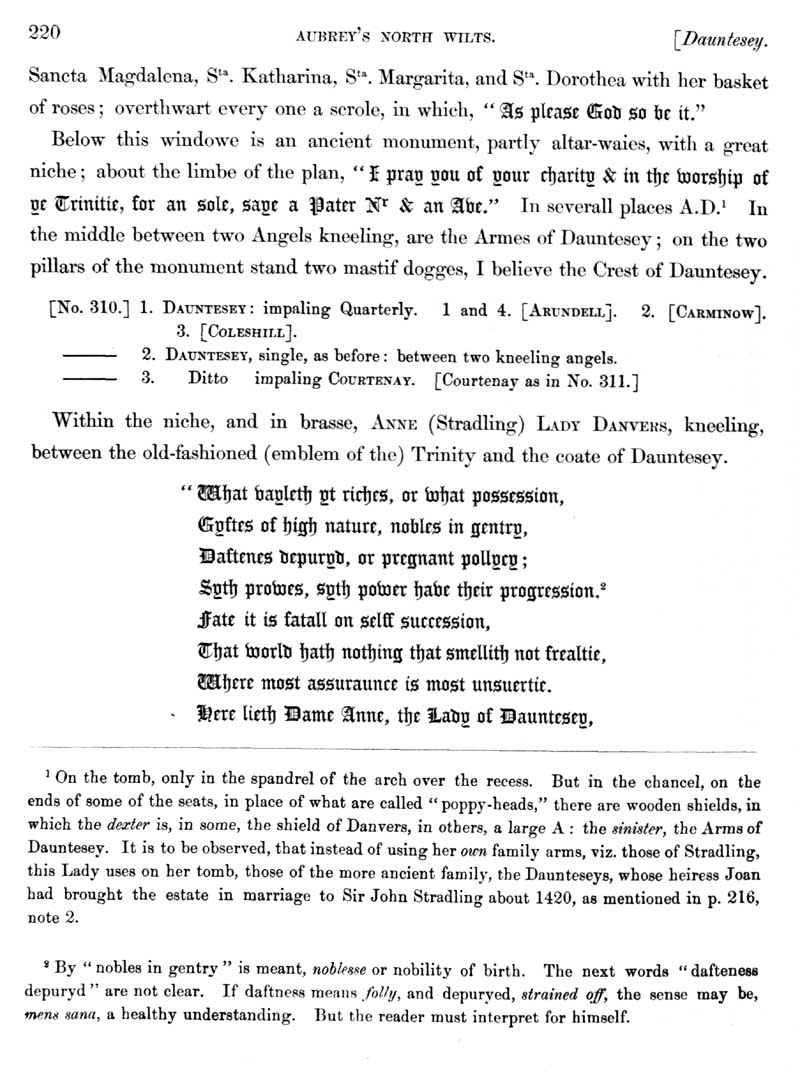 Page 16 History of Dauntsey; descent of the manor, Stradling family, Danvers family.
