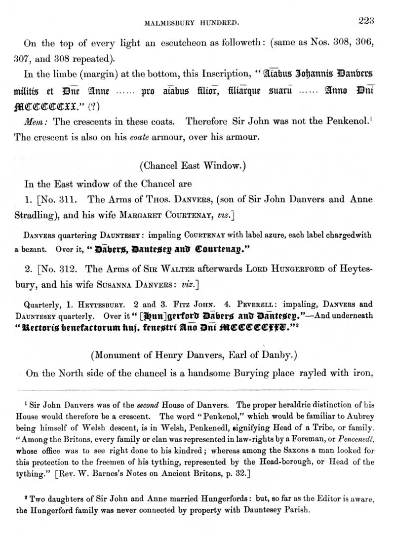 Page 19 History of Dauntsey; descent of the manor, Danvers family.