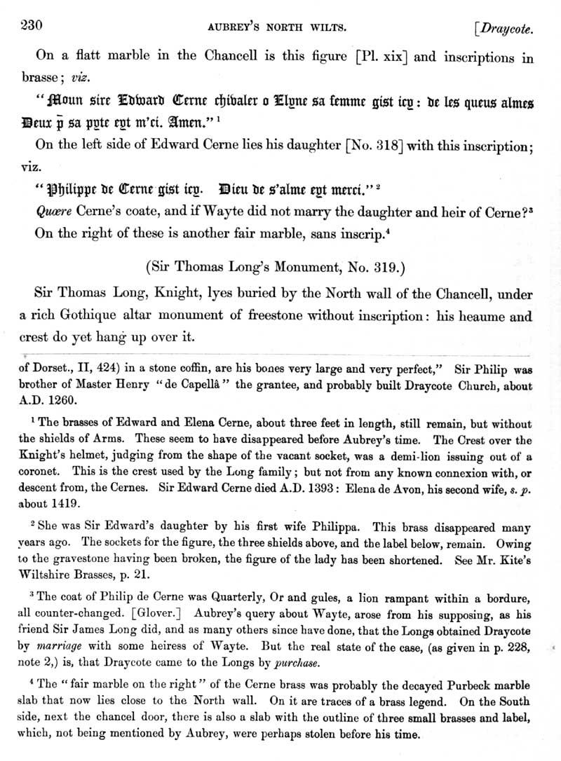 Page 26 History of Draycot Cerne (Sutton Benger) the church, Sir Thomas Long's monument.