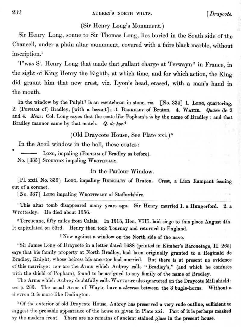 Page 28 History of Draycot Cerne (Sutton Benger) the church, Sir Henry Long's monument, Old Draycot House.
