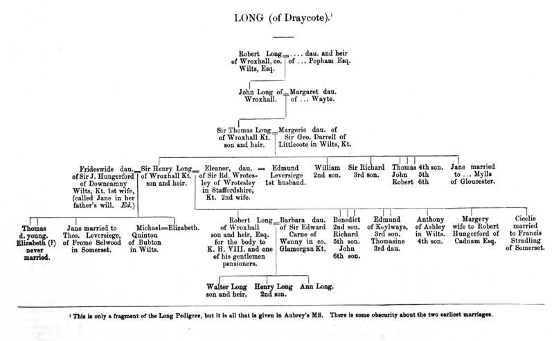 Page 30 History of Draycot Cerne (Sutton Benger); pedigree of the Long family.