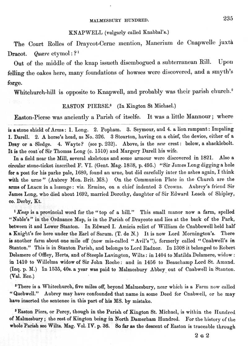 Page 31 History of Draycot Cerne (Sutton Benger); Knapwell, Draycot Mill. History of Easton Piercy (Kington St. Michael).