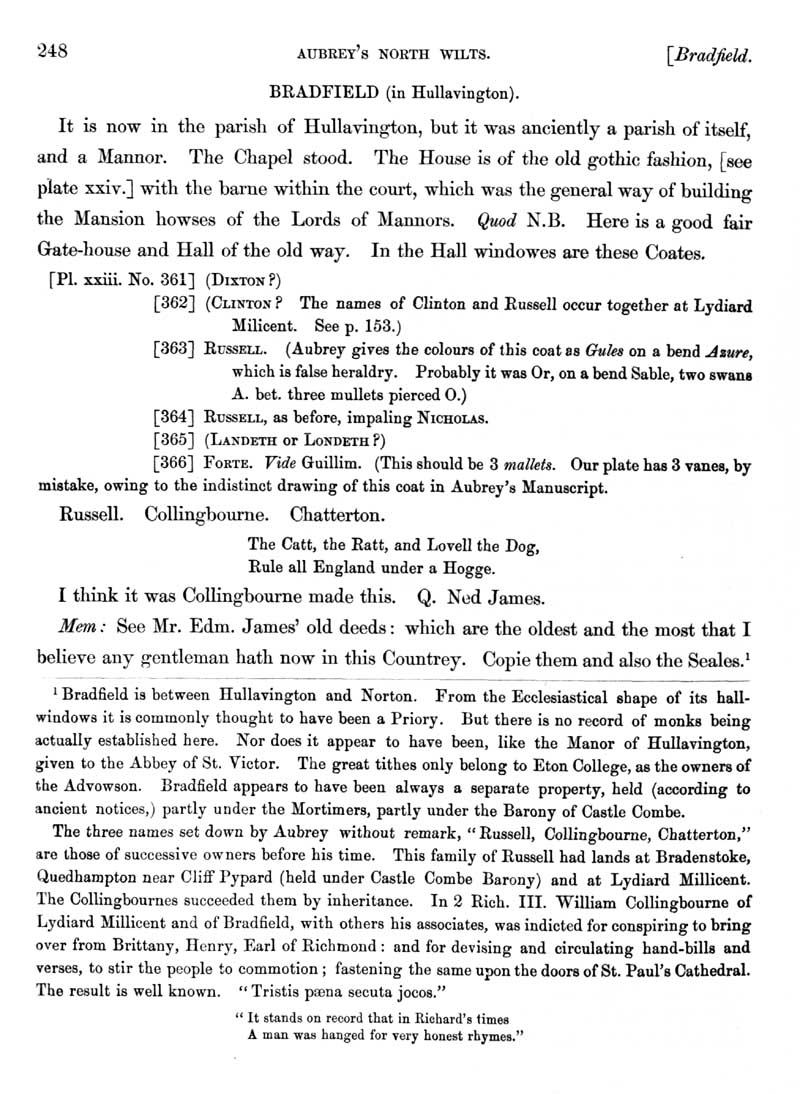 Page 44 History of Hullavington; Bradfield hall or priory.