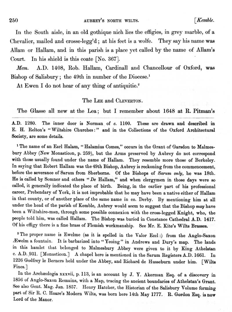 Page 46 History of Kemble (now in Gloucestershire). History of Lea and Cleverton.
