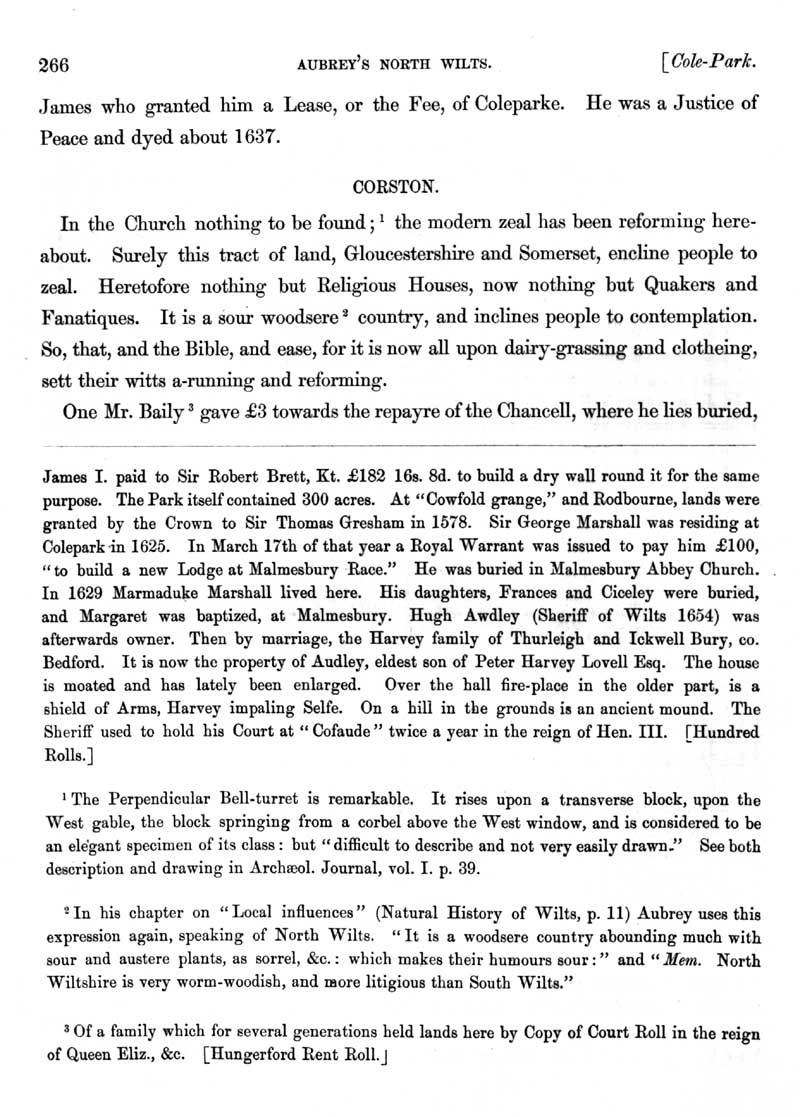 Page 62 History of Malmesbury; Cole Park, Corston.