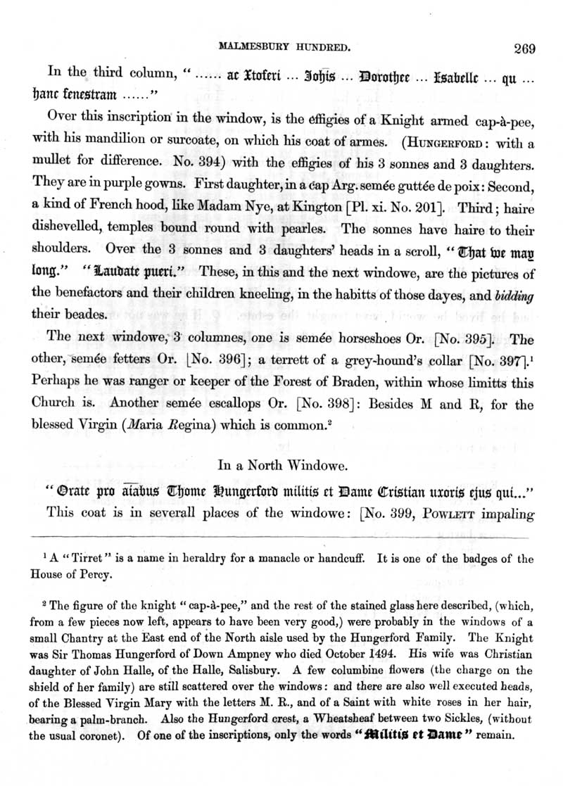 Page 65 History of Minety, the church, monumental inscriptions - Sir Thomas Hungerford.