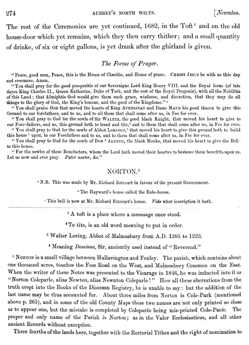 Page 70 History of Long Newnton (now in Gloucestershire), church, custom on Trinity Sunday and prayer. History of Norton.