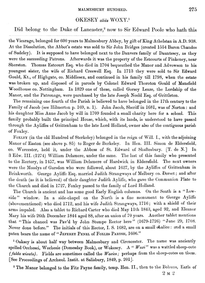 Page 71 History of Norton; Foxley. History of Oaksey.