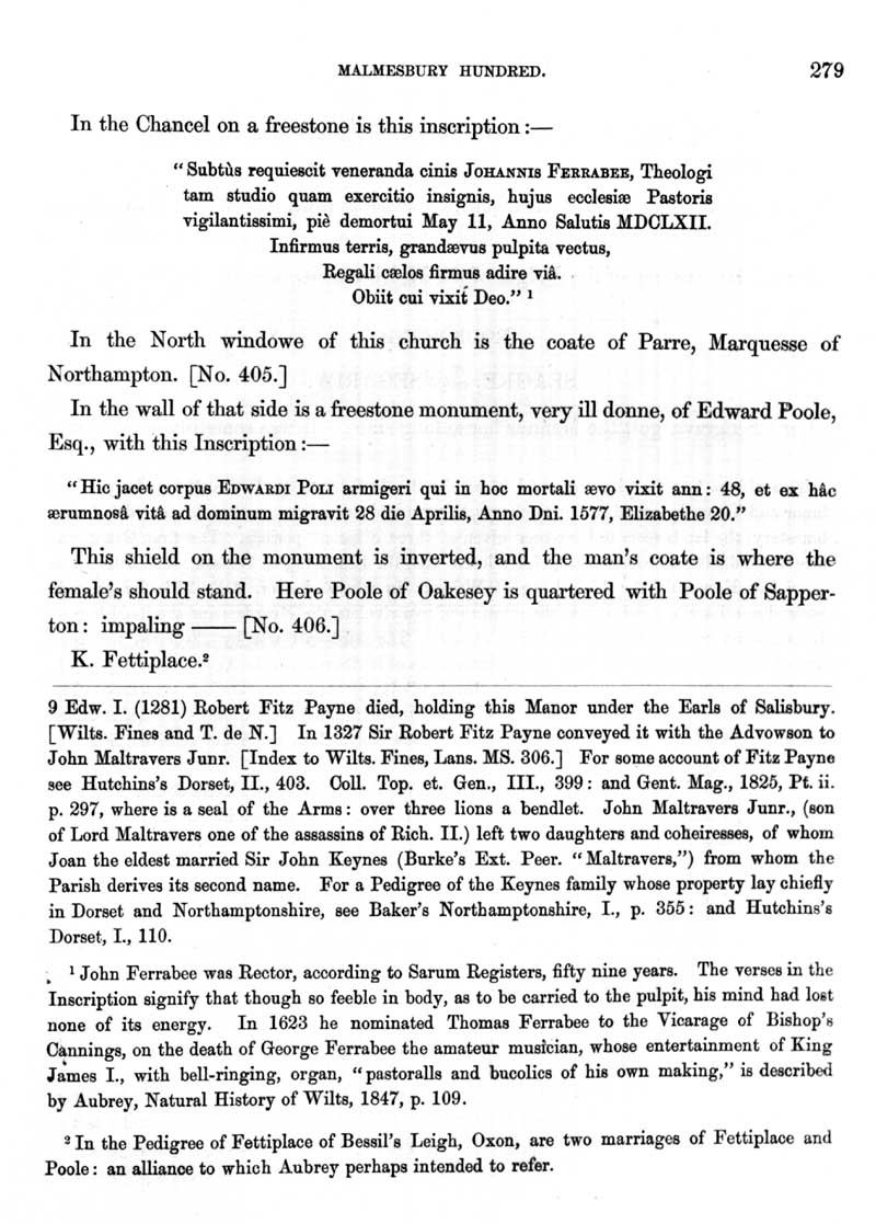 Page 75 History of Poole Keynes (now in Gloucestershire), the church and monumental inscriptions.