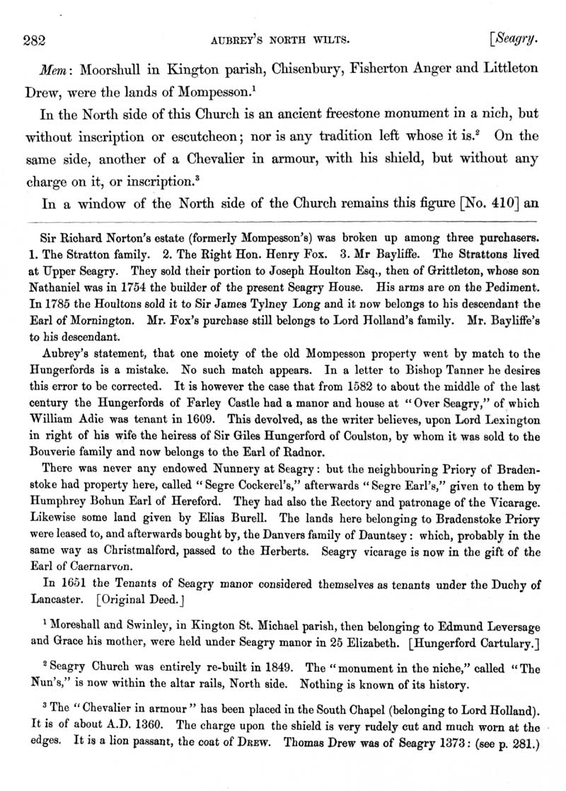 Page 78 History of Seagry, landowners, church.
