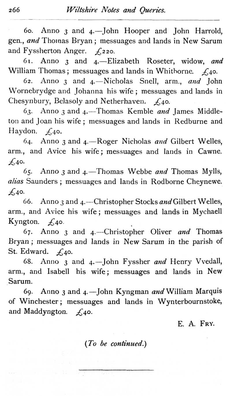 Page 28 Feet of Fines for Wiltshire