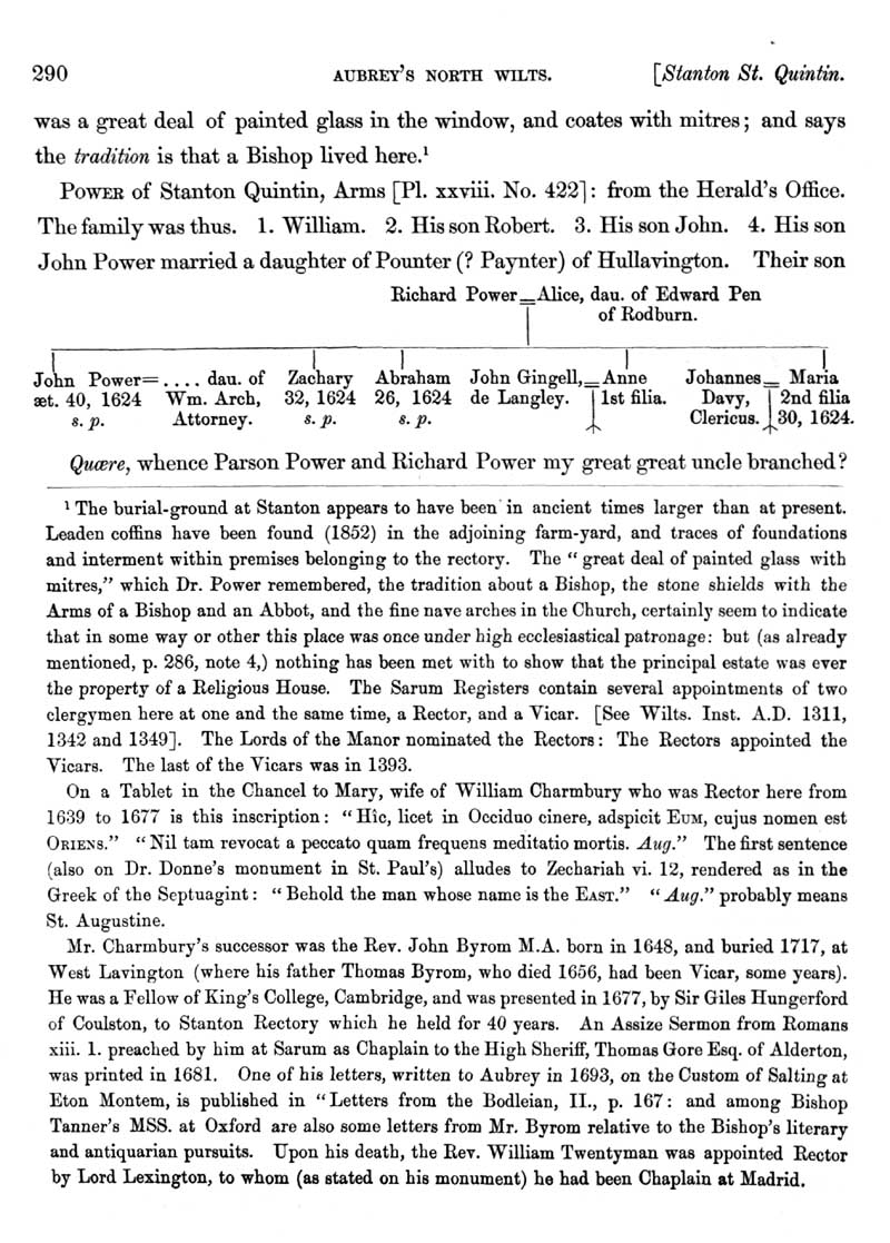 Page 86 History of Stanton St. Quintin; the church and churchyard, the parsonage, the Power family.