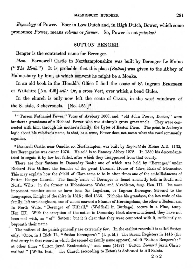 Page 87 History of Stanton St. Quintin; the Power family. History of Sutton Benger, the church.
