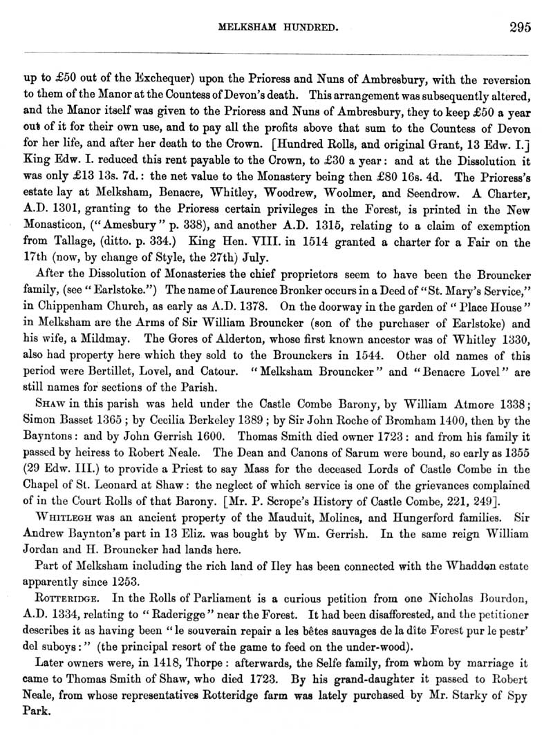 Page 2 History of Melksham; the manor, landowners, Shaw, Rhotteridge.