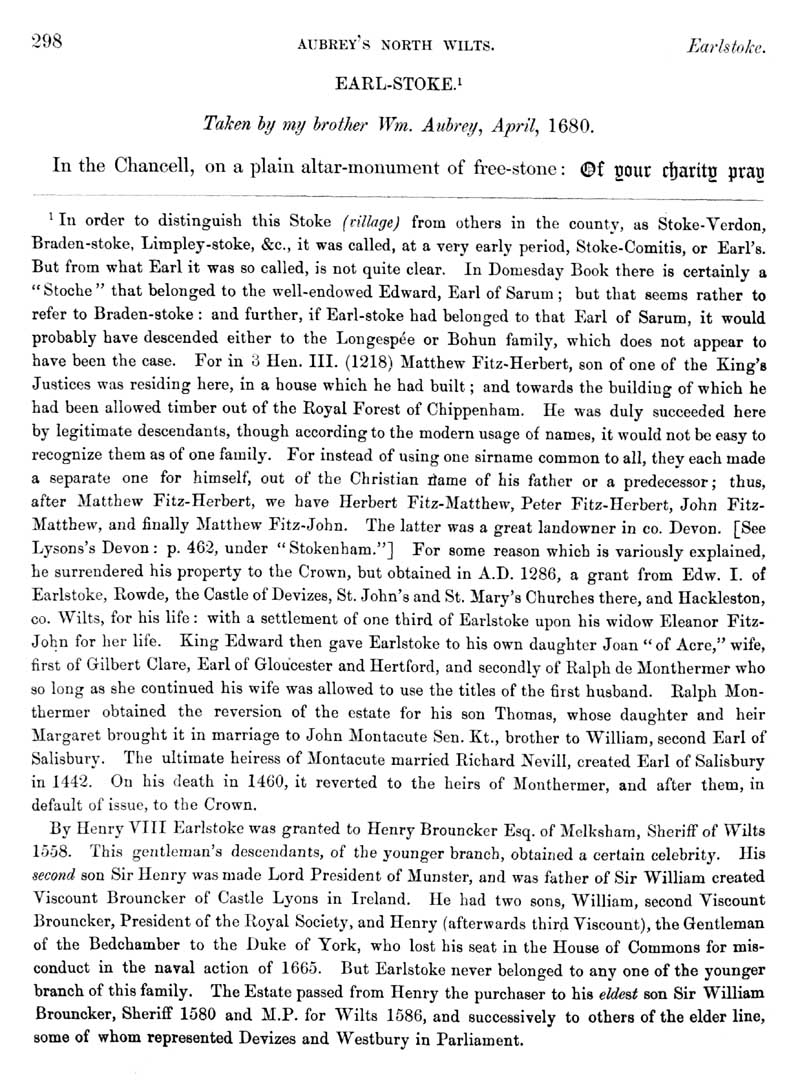 Page 5 History of Erlestoke; church, landowners, Brouncker family.
