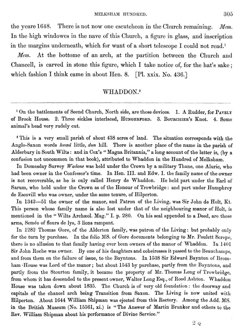 Page 12 History of Seend; the church. History of Whaddon, landowners.