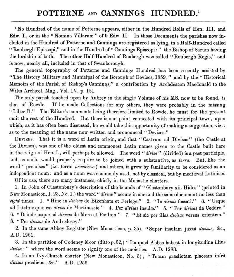 Page 1 History of the hundred. Meaning of, and sources for, the name Devizes.