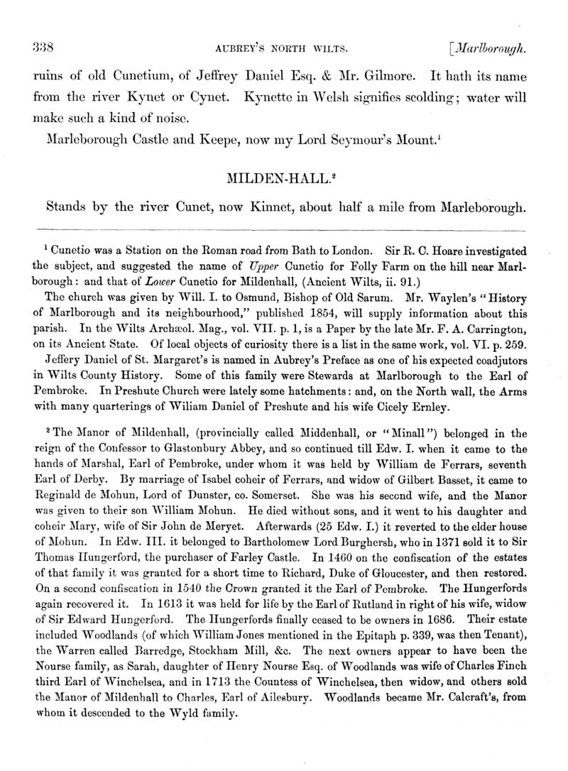 Page 27 History of Marlborough. History of Mildenhall; Cunetio, landowners.