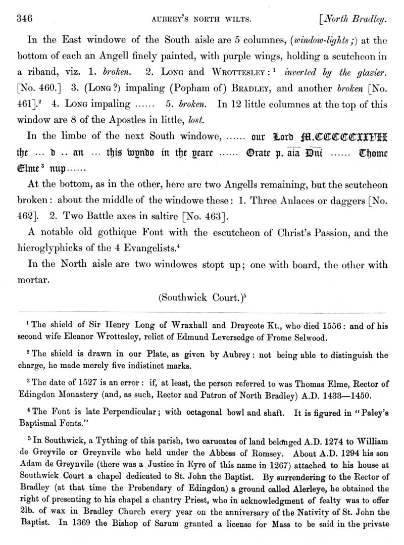 Page 2 History of North Bradley; the church, monumental inscriptions, Long family, Southwick.