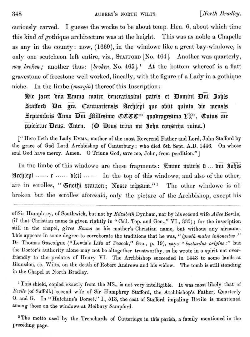 Page 4 History of North Bradley; church and monumental inscriptions, Stafford chapel, John Stafford.
