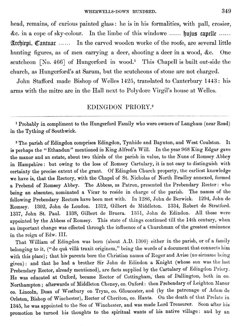 Page 5 History of North Bradley; church, Stafford chapel. Edington Priory; William of Edington