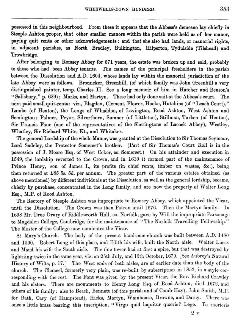 Page 9 History of Steeple Ashton; landowners, rectory, church of St. Mary.