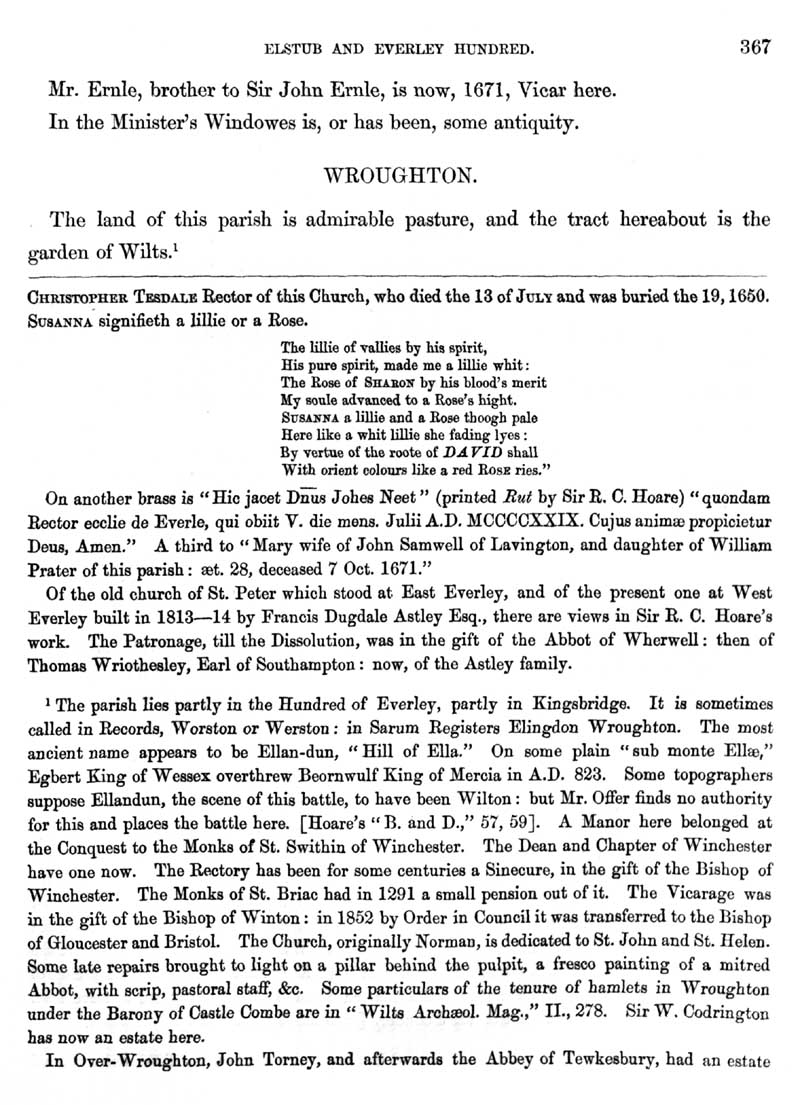 Page 3 History of Everley, church and monuments, rectors. History of Wroughton.