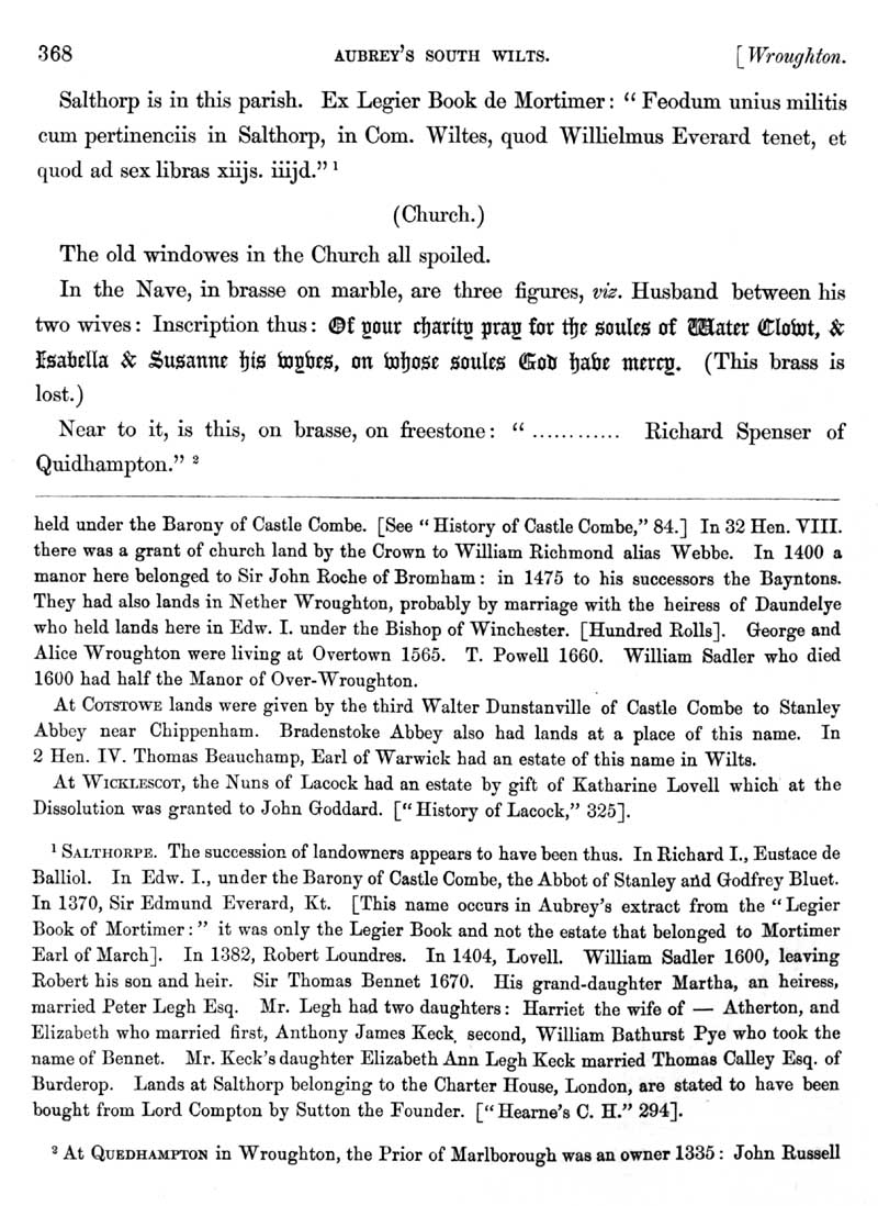 Page 4 History of Wroughton, church and monuments, Salthrop, Quedhampton.