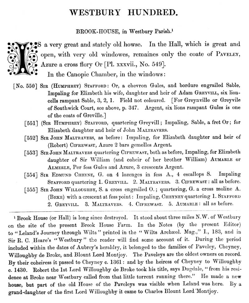 Page 1 History of Brook House, description of rooms with coats of arms.