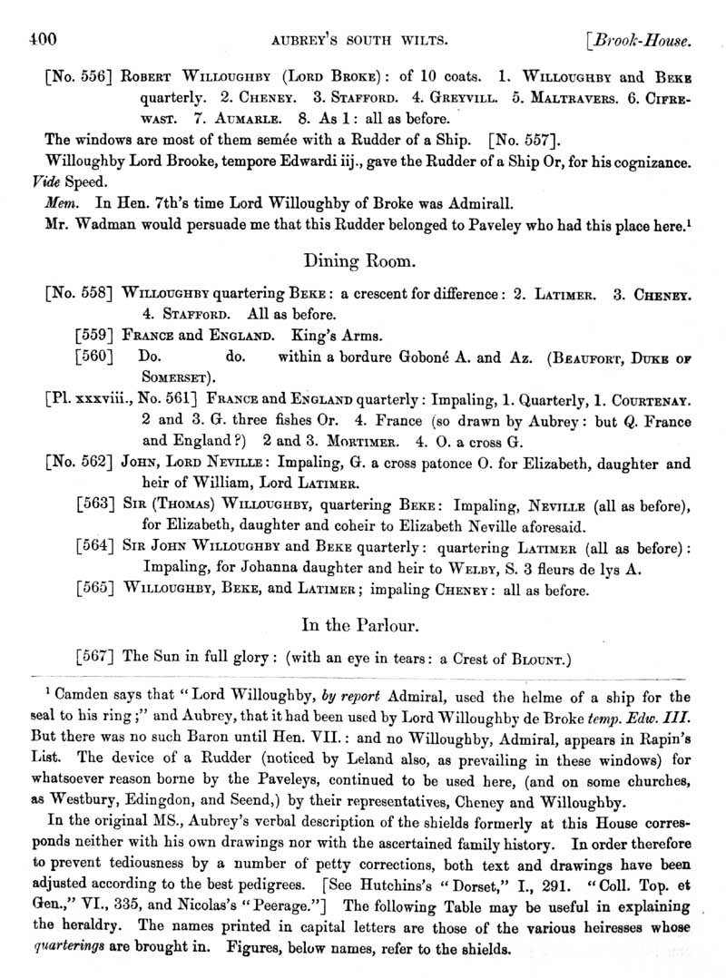 Page 2 History of Brook House, description of rooms with coats of arms.