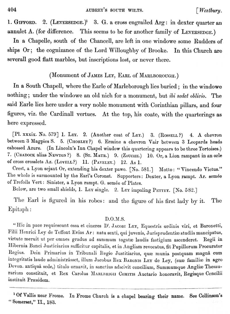 Page 6 History of Westbury, the church and monumental inscriptions.