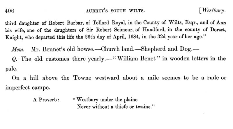 Page 8 History of Westbury, the church and monumental inscriptions.